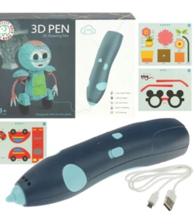 Creion 3D pentru Desenat – Include 3 Filamente, 10 Sabloane, USB, pentru Crearea Obiectelor Tridimensionale, 3ani+, Albastru