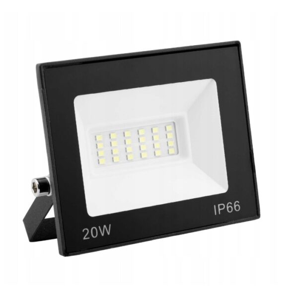 Acest proiector LED de 20W ofera o solutie moderna si eficienta pentru iluminatul exterior. Cu un flux luminos de 1800 lumeni, asigura o lumina puternica si uniforma, ideala pentru curti, terase, gradini, parcari, cladiri sau alte spatii exterioare.